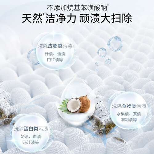 添加了多重去污因子,能轻松去除衣物局部的各种顽固污渍,帮助减少费力搓洗,同时还能呵护纤维,令衣物不易变形。