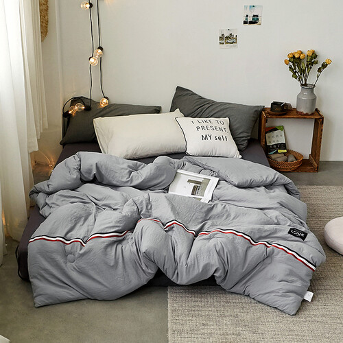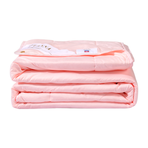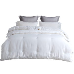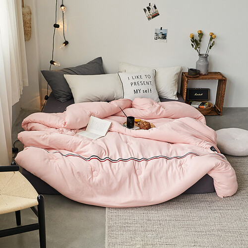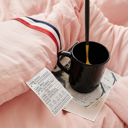 采用了圆点立衬工艺,定点绗缝,保证羽丝绒分布均匀不移位板结。采用圆点立衬工艺,可使被内的羽丝绒分布均匀,避免久用结团。