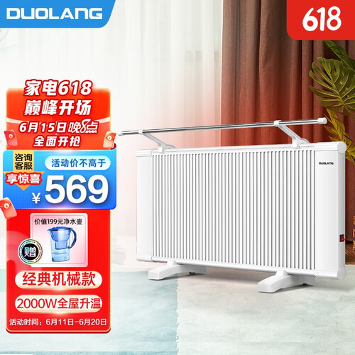 效能高的碳晶发热板,3秒即可达到260摄氏度,释放远红外如阳光般温暖。M型散热片,散热面积大全屋升温快速。