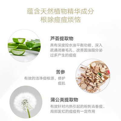 草本植物配方配制而成,针对六种顽固痘痘,让肌肤细腻嫩滑。同时又能吸附肌肤油脂,保持水油平衡,肌肤更清爽。