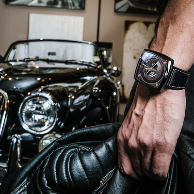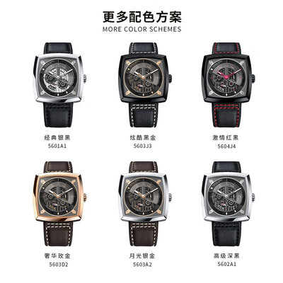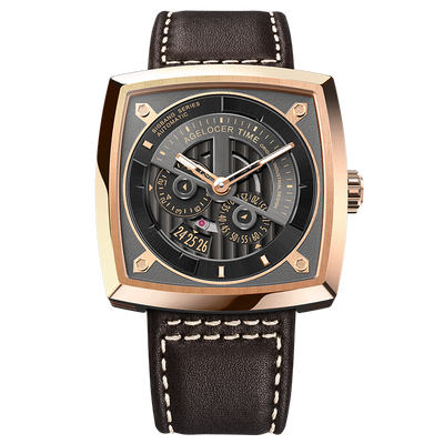 大气的玫金表壳加以时尚镂空自动机械表芯,让光阴清楚呈现。配以牛皮表带,贴合手腕,尽显男士的时尚魅力。