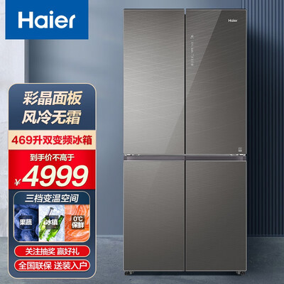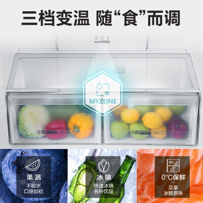 双变频冰箱,自动变化运转频率,一天仅需0.85度电,节能环保。469升超大容量,轻松储存大量食材,避免天天采购繁琐。