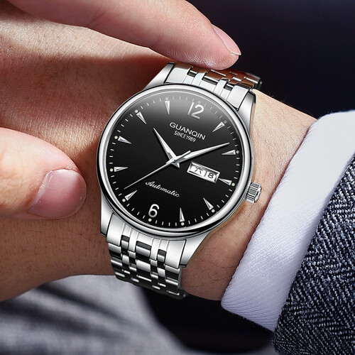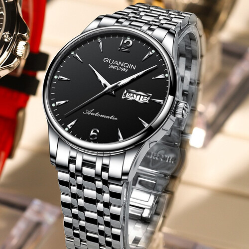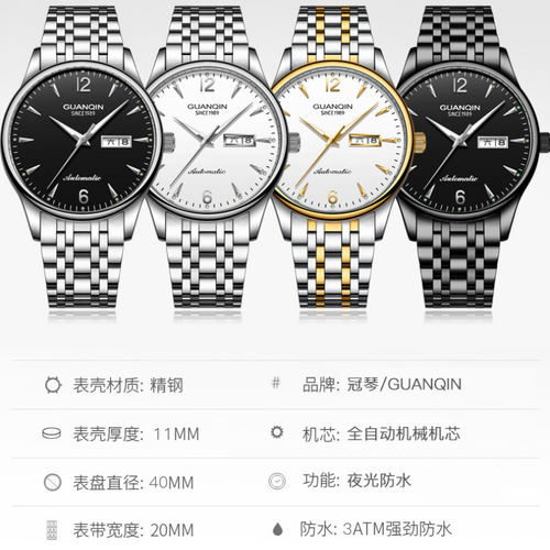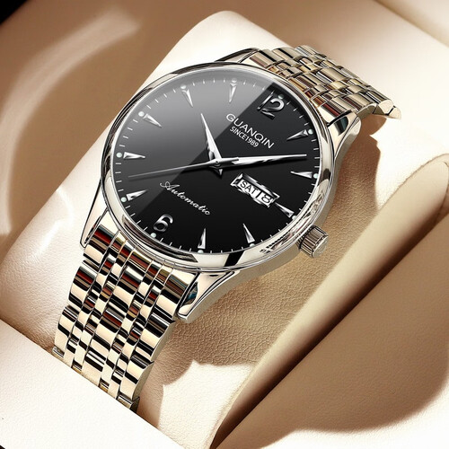 做工精细采用品质机芯,全自动精准走时不用手动调节,大表盘搭配大表带非常大气,人工合成蓝宝石玻璃坚硬耐磨,视觉通透感更佳。