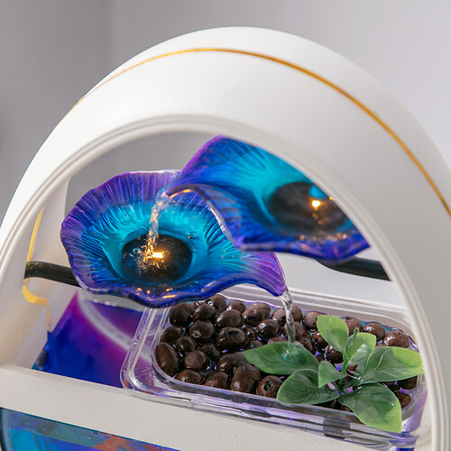 大容量鱼缸,可以放置大量鱼和沙草,便于欣赏鱼儿嬉戏的场景。荷叶花瓣摆件,时尚精美,在灯光的照耀下熠熠生辉。