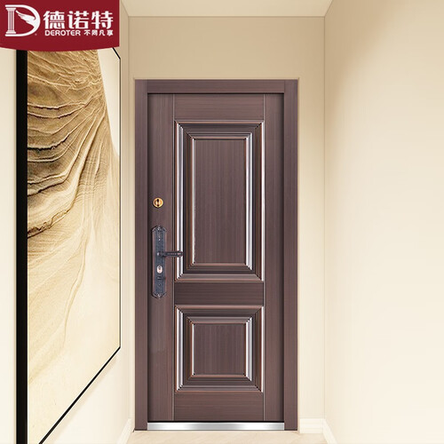 表面真空喷漆仿铜拉丝工艺,塑就别致外观,彰显轻奢雅意,安装大气有范。门扇外置五层防撬,给你满满安全感。