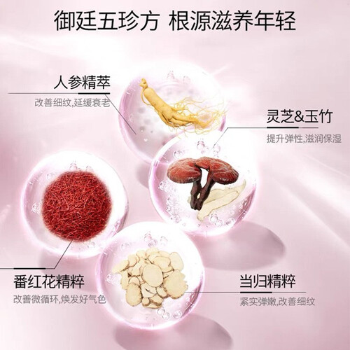 甄选当归和番红花等五种珍贵植粹成分,深层呵护肌肤,为肌肤补充流失的营养。经过八道萃取,保证了有效成分的高活性,温和补水。