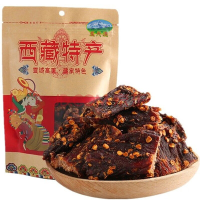 来自西藏拉萨的风干牦牛肉,肉质紧密有嚼劲,风干工艺保留了牦牛肉的营养和浓郁风味。