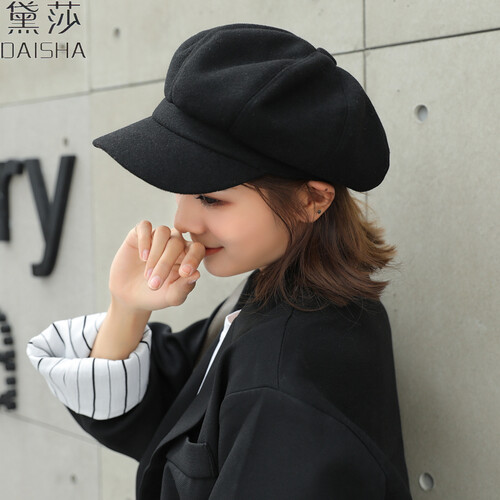 百搭的黑色八角帽,颜色百搭不挑人,不同年龄段的女性都可佩戴。圆顶+鸭舌设计,线条简约优雅,为你增添甜美气息。