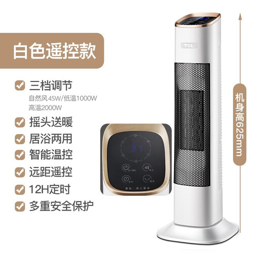 整机纤薄立式,节省家居空间,造型时尚大气,百看不易厌烦,能增添家居型格。超大广角送风,全身舒享暖感,手脚都不觉冷。
