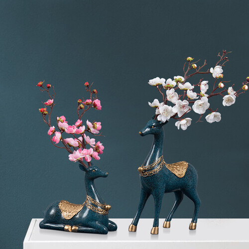 采用环保树脂手工雕刻而成,麋鹿神态优雅,造型栩栩如生,头部梅花可自由拆卸,带来不同风格。