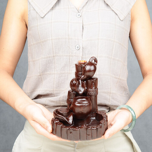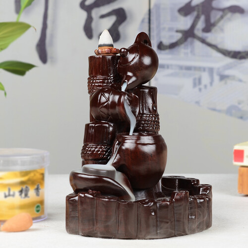 精选非洲黑檀原木制作而成,香炉工艺精美,造型别致,倒流塔香烟气自高处往下流,如瀑布般似梦似幻。