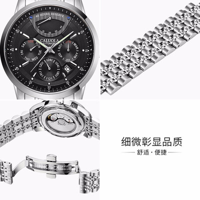 双按蝴蝶扣的设计,不仅具有美观性,而且使用起来也更加便捷。实心的精钢表带,具有良好的亲肤性,既时尚又耐用。