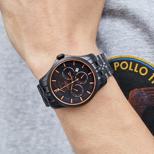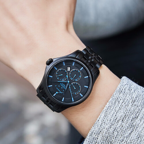 表扣采用双按蝴蝶扣的设计,简单设计,佩戴更便捷,也不容易掉落;搭载进口机械机芯,走针准确,性能更强劲。
