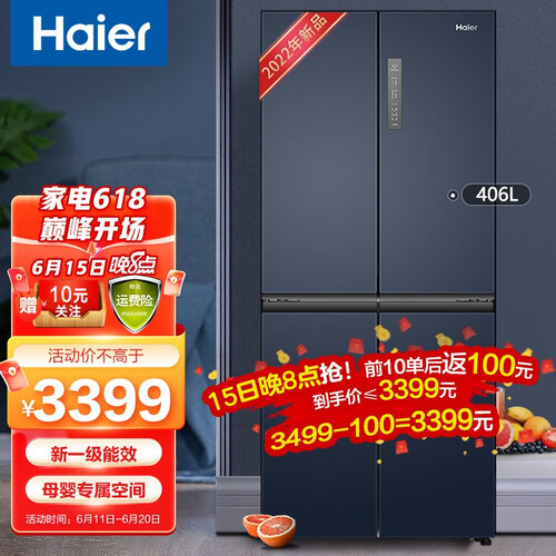 海尔 除味变频家用四开门冰箱