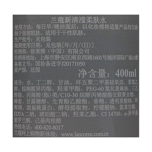 含有蜂蜜等三大自然精粹和酵母提取物、玻尿酸成分这两种补水成分,为肌肤带来有效的保湿滋养,缓和干燥,柔嫩肌肤。