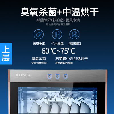 康佳的这款消毒柜支持上下室独立控制,臭氧+高温消毒更彻底,并且还有臭氧除菌祛味功能,令餐具更清新洁净。