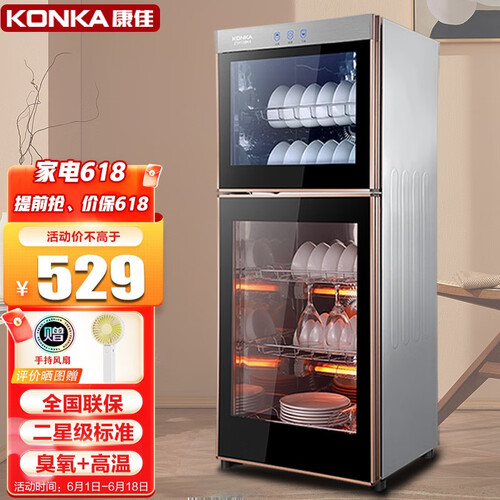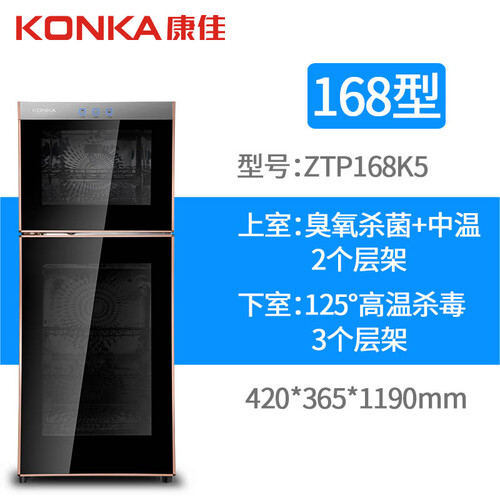 上室采用臭氧杀菌+中温烘干方式,可消灭多种顽固细菌,不易损伤餐具。多层大空间设计,分类置放碗碟等物品,美观又实用。