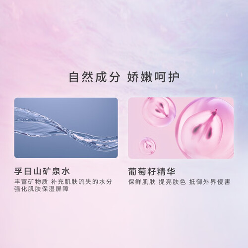 含有葡萄籽精华,改善肌肤的暗沉无光,由内而外提亮肤色,塑造粉嫩白皙肌。持久保湿的能力,晨起后肌肤也水润。
