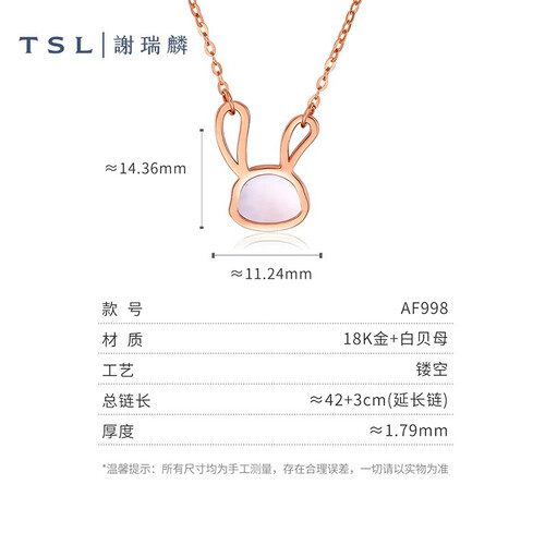 可爱萌趣的小兔子吊坠,佩戴于颈间,更衬女性活泼俏皮的气质,很适合日常佩戴。延长链设计,佩戴更加舒适随心。
