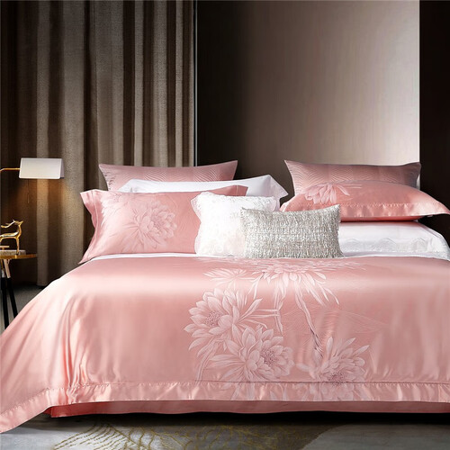 欧式提花搭配梦幻粉色调,清新雅致,尽显轻奢质感。不规则的几何图案组成的凹凸花纹,层次感丰富,彰显设计感。
