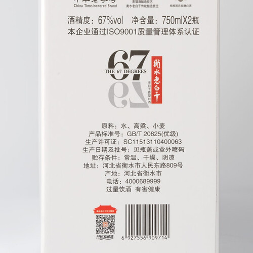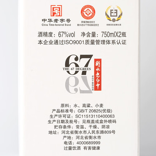 衡水老白干 冰峰67度白酒