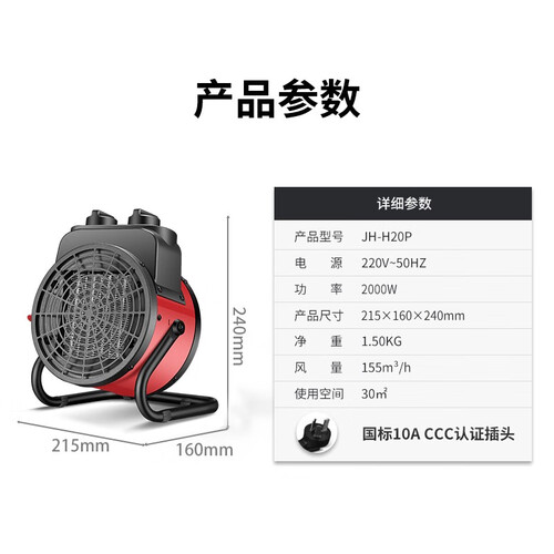 陶瓷PTC发热体,热效率高,自动恒温,节能省电。具有防水机身,机身采用了防水的材料,可以适用于多种环境。
