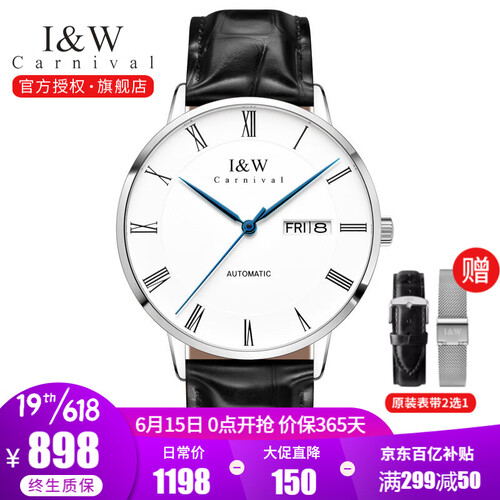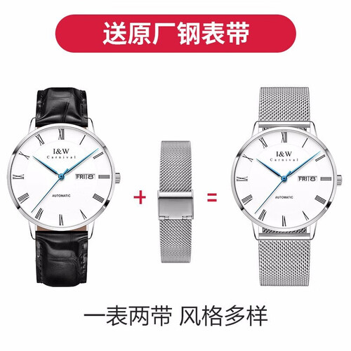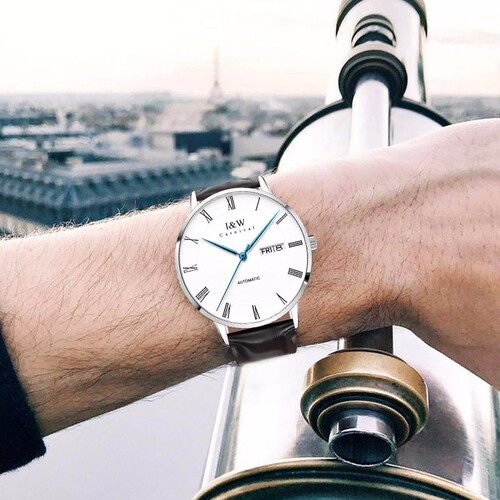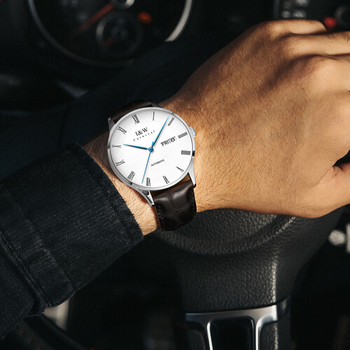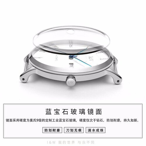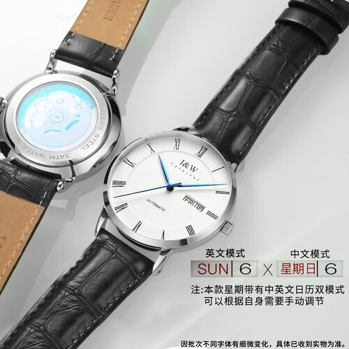 白色大圆盘设计,搭配湛蓝指针和黑色罗马时标,清晰鲜明,日常读时直观又快捷,牛皮材质表带,柔软亲肤,透气效果佳。