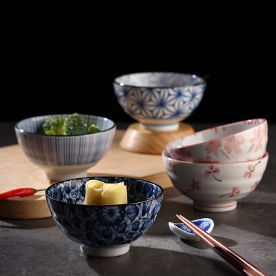 日式陶瓷餐碗套装,每个碗带有花纹独特,别具韵味。结合人性化的高脚设计,防烫效果好,端取更安全。