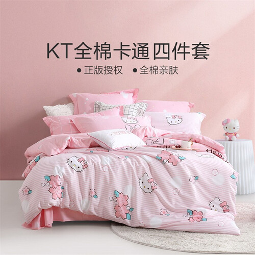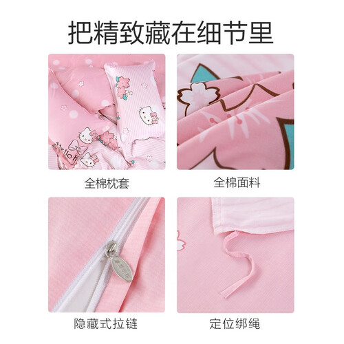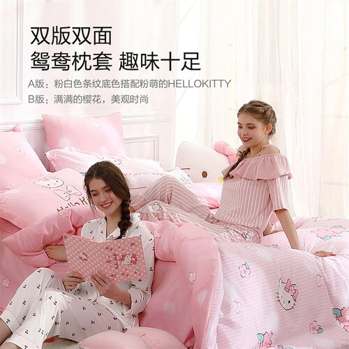 采用激萌kitty猫印花搭配粉嫩底色,撩拨你的少女心。全棉面料搭载斜纹织造工艺,柔软亲肤畅享舒适睡眠。