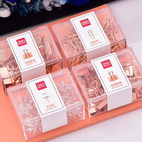 得力 玫瑰金多功能蝴蝶夹