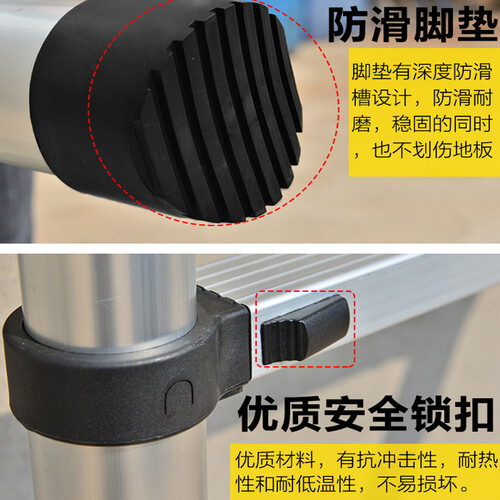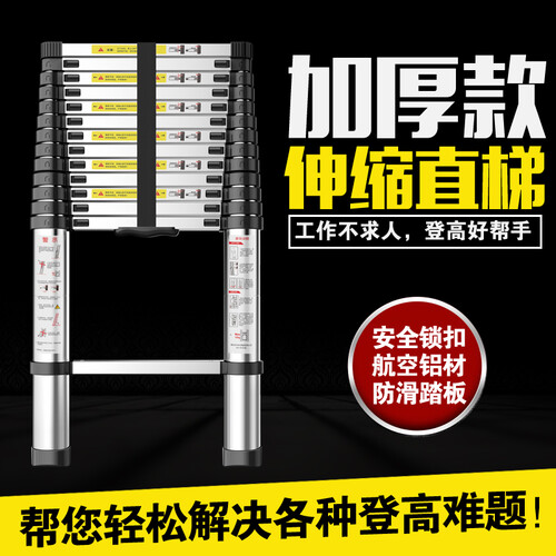 这款可伸缩的直梯,便于户外携带,登高工作更方便;强大的承重能力,轻松承托重量,防止梯子变形断裂。