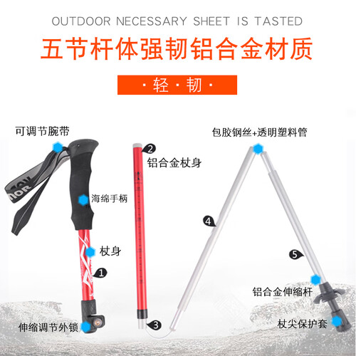 曦途 五节可折叠多功能登山杖