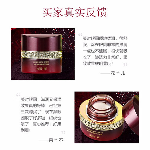 用后皮肤弹润细腻,味道清淡,能够带给人舒服的享受。眼霜膏体很细腻,吸收也很好,不黏腻,用完皮肤很有水光感。