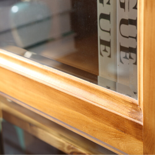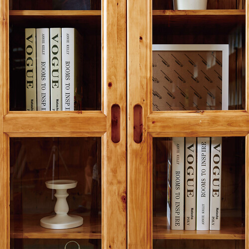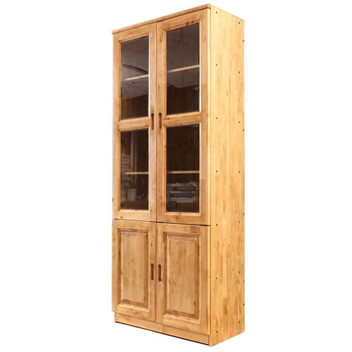 全实木书柜,采用透明玻璃门与实心木门相结合,既可摆放精美装饰,同时也能收纳私密物品,一举两得。加厚柏木背板,结实耐用。