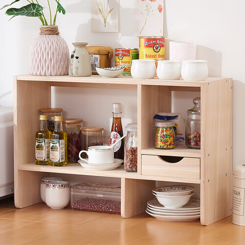 置物架可以垂直翻转使用,适合多种场景使用,功能多样;选用实木加厚挡板,拥有较好的承重能力,物品不易掉落。