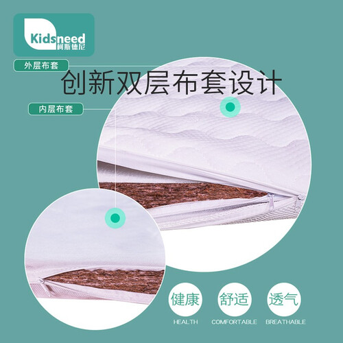 采用杜邦面料,材质防泼水抗撕裂,具有很好的防螨效果。3D椰棕内芯,质地厚实柔韧,宝宝久用环保无异味。