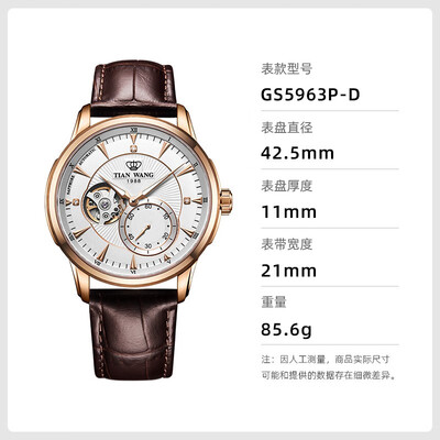 天王 男士商务皮带机械腕表