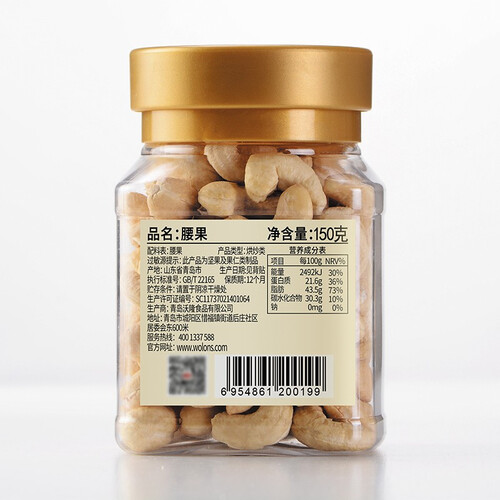 精挑细选色泽正宗的腰果,低温烘培后拥有自然香气,同时保留营养,口感丰富又不显油腻,吃一口浓醇香脆,能量满满。