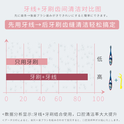 采用聚乙烯纤维,柔韧舒适,不易断裂,深入牙缝,带来更好的清洁体验。采用独立包装设计,干净卫生,带来更好的携带体验。