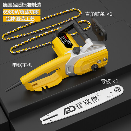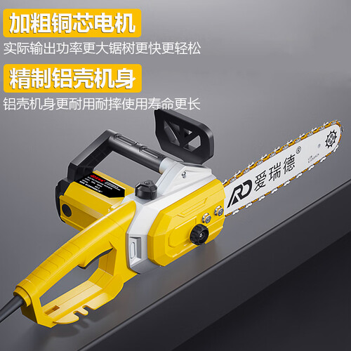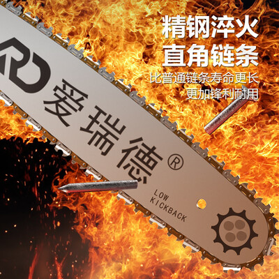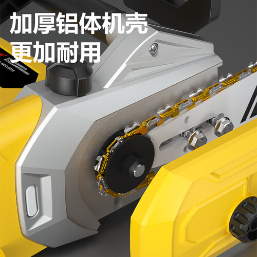 铝合金机身坚硬耐用,全铜芯电机大功率,工业级制作标准长时间使用不烧机;高硬度导板和直角链条锋利十足,劈柴,伐木一机搞定。