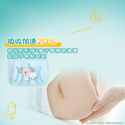均匀吸收,带来更为贴身的穿着感受,吸收后不易鼓包。立体防漏护围,宝宝可以自如活动,不用担心出现漏尿现象。