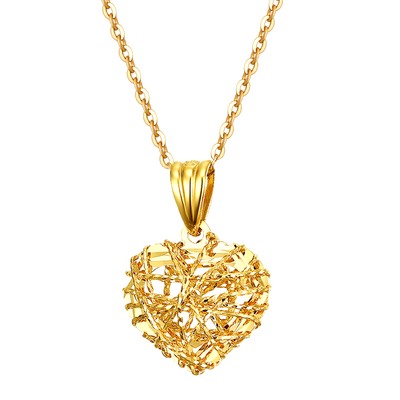 经典的心形吊坠融入别致镂空的特色设计,简约优雅传递浪漫心语,造就女性高贵质感。18K金保证持久不掉色。