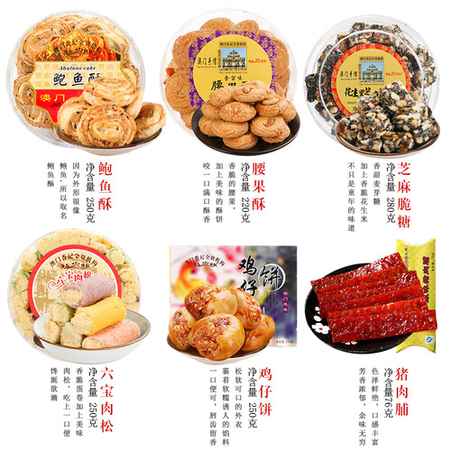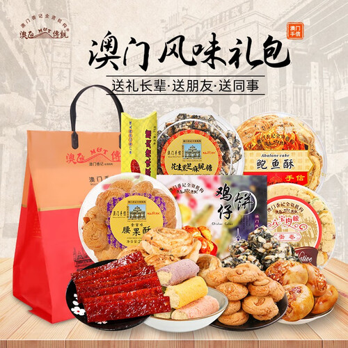 精选肉松蛋卷、猪肉脯、鲍鱼酥等多种小食搭配组合,具有甘香浓郁的口感。加上精美的纸带外包装设计,适合作为朋友的送礼优选。