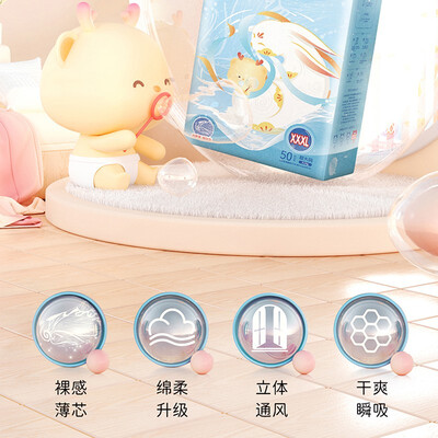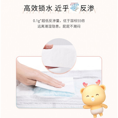 芯层内含特质吸水魔珠,吸水量更高,尿液不易反渗。采用柔软压纹减薄设计,芯体不易起球,宝宝活动更轻便。