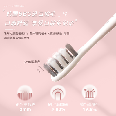 高频声波振动,带动水流冲刷齿缝,赶走牙菌斑,还你清新口腔。3D前驱裁剪刷丝,口感提升不倒毛。