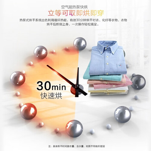 采用热泵式设计,低温节能。更具热泵科技30分速烘不等待,去异味空气更清新,节能烘干省时省电更环保。