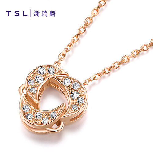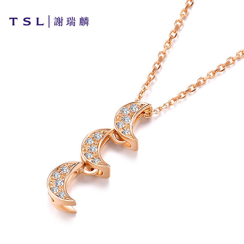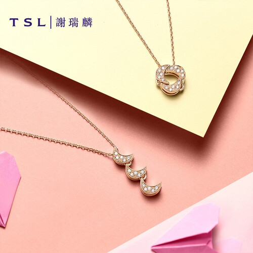 18K金和钻石相结合的月牙项链,可一款多戴。月牙交织的漩涡造型,象征爱与激情;月牙垂落佩戴,彰显温雅气质。