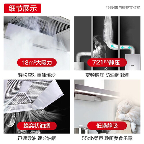 一体成形集烟腔,拒绝藏污纳垢。立体环吸科技,有效加快排烟速度。低噪静吸科技,降低噪音,带来安静的厨房环境。
