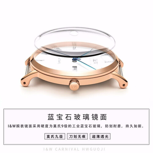 I&W玫金钢带防水耐磨瑞士手表