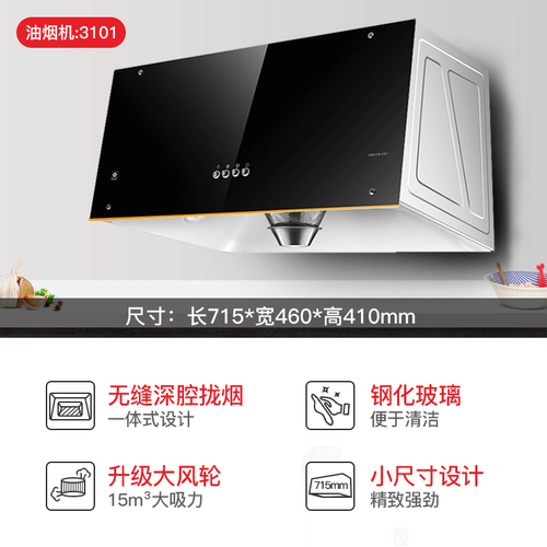 这款中式设计的油烟机搭载了两个马达,具备强悍的动力,并拥有双进风口,空气循环速度更快,排烟更干净。